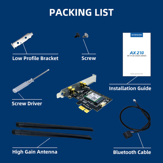 Intel AX210NGW Bluetooth 5.3 WiFi Card Support Windows 10/11 (64bit) M.2 NGFF SSD